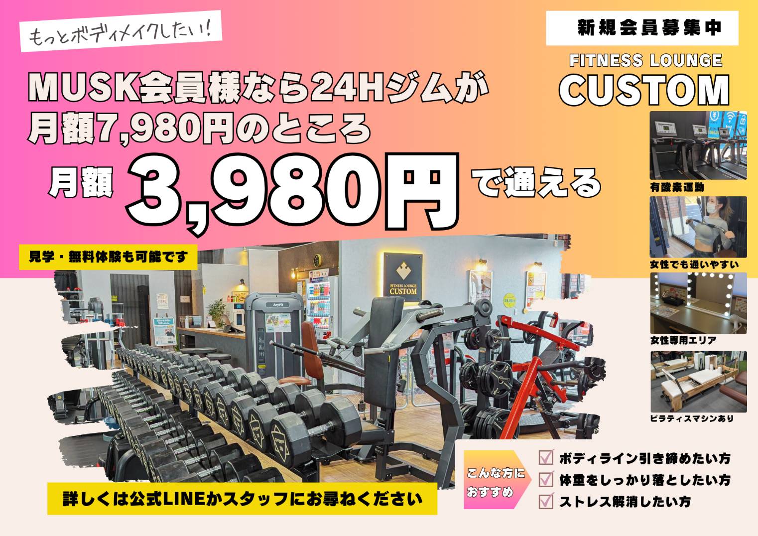 提携ジム【FITNESSLOUNGECUSTOM】が